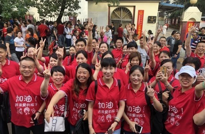 長江日報融媒體6月20日訊(記者楊幸慈)6月20日早上8點,德才中學(xué)考點門口前,二橋中學(xué)九(7)班家長統(tǒng)一著裝,身前印著“加油!我親愛的孩子”,身后為“miracle7”(奇跡7),用特殊的方式給孩子加油鼓勁。